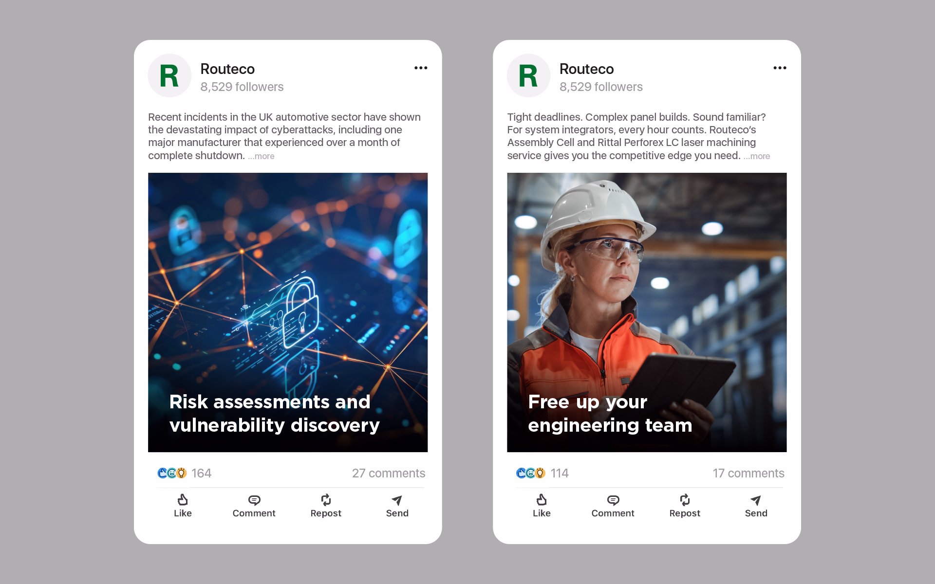 We built a content strategy that transformed Routeco’s social presence, positioning them as a thought leader in industrial automation.